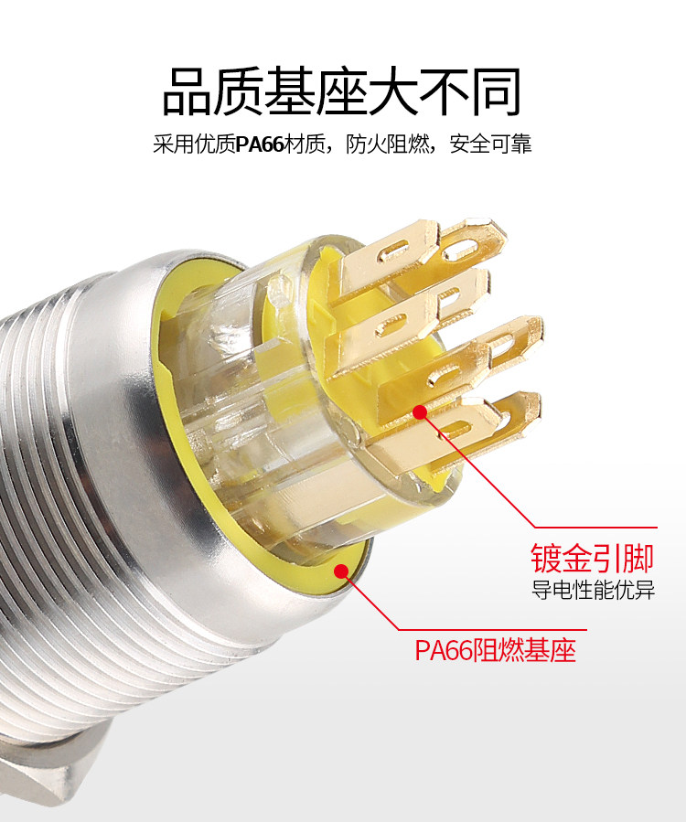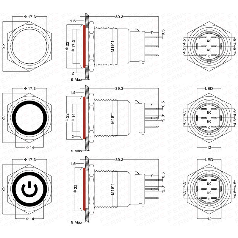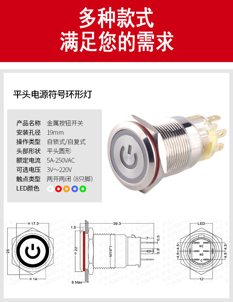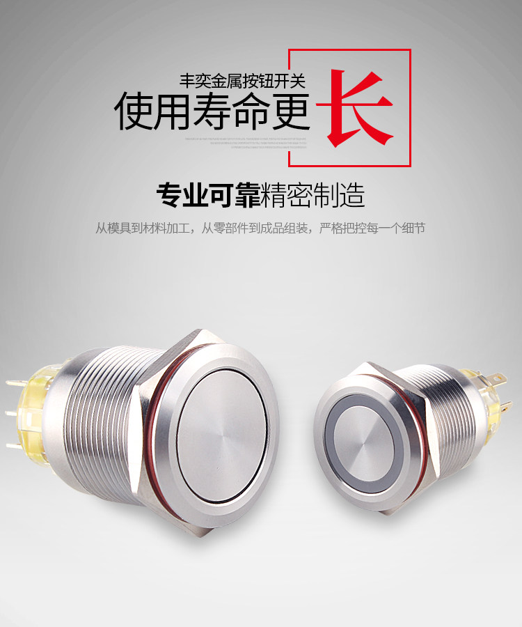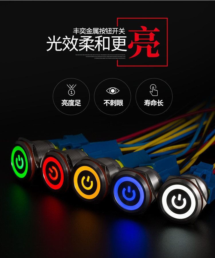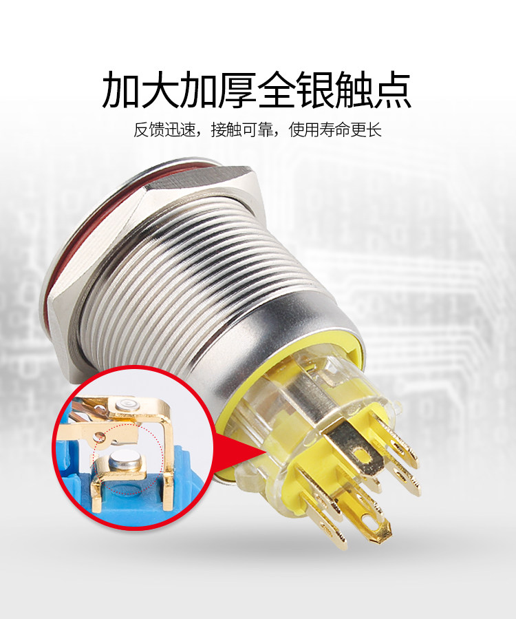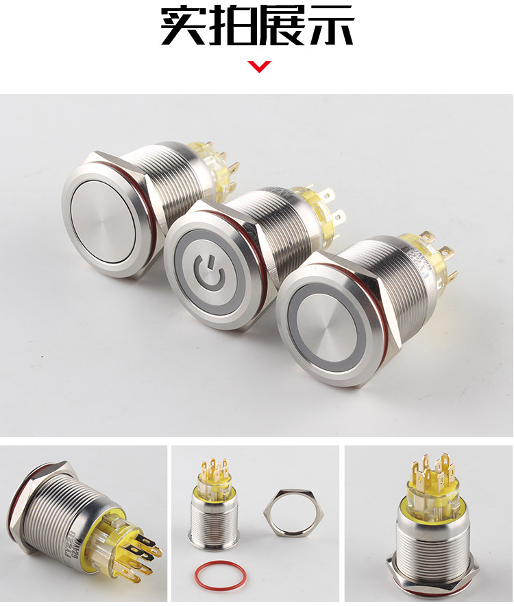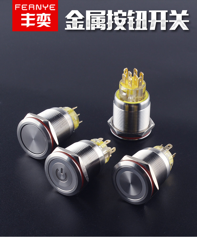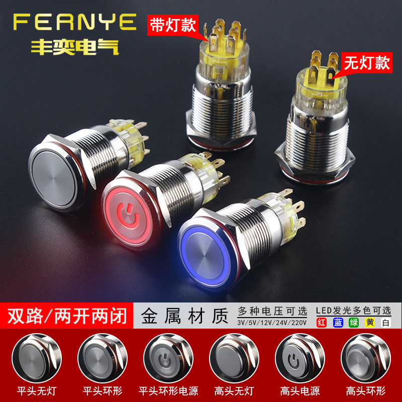Металлическая кнопка, двойной водонепроницаемый круглый переключатель с подсветкой, 19mm
