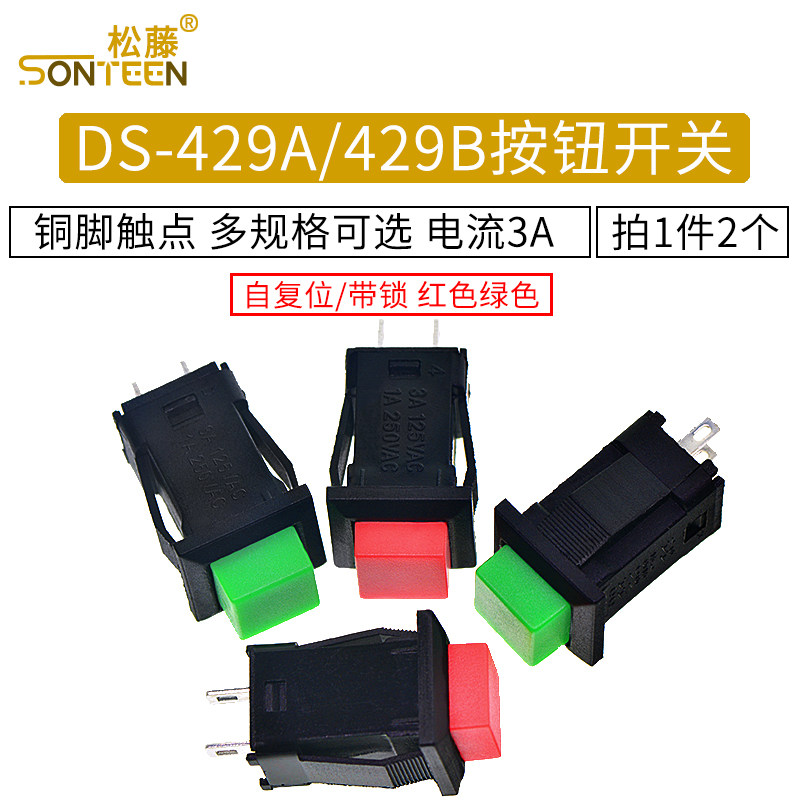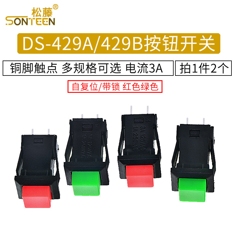 DS-429A/429B Переключатель кнопки с блокировкой без блокировки переключатель кнопки «Саморерезионное» Красный зеленый (2)