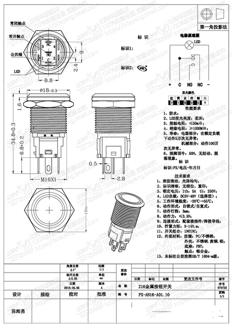 16 -миллиметровый металлический переключатель питания/самостоятельный круглый переключатель водонепроницаемый выключатель.
