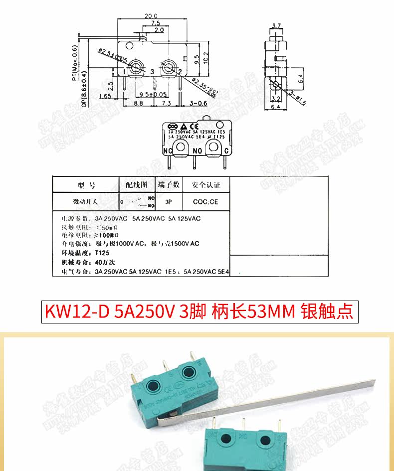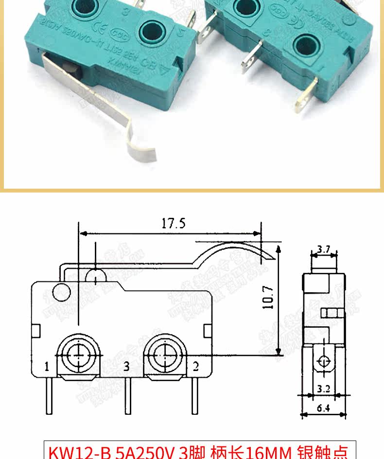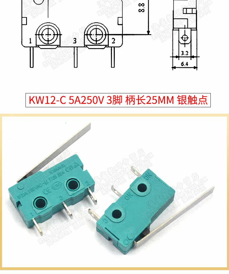 Серебряный контакт 5A250V Микро -моющий переключатель KW12 Кнопка переключателя переключателя KW12 Кнопка контакта 2 и 3 -контактный переключатель маршрута