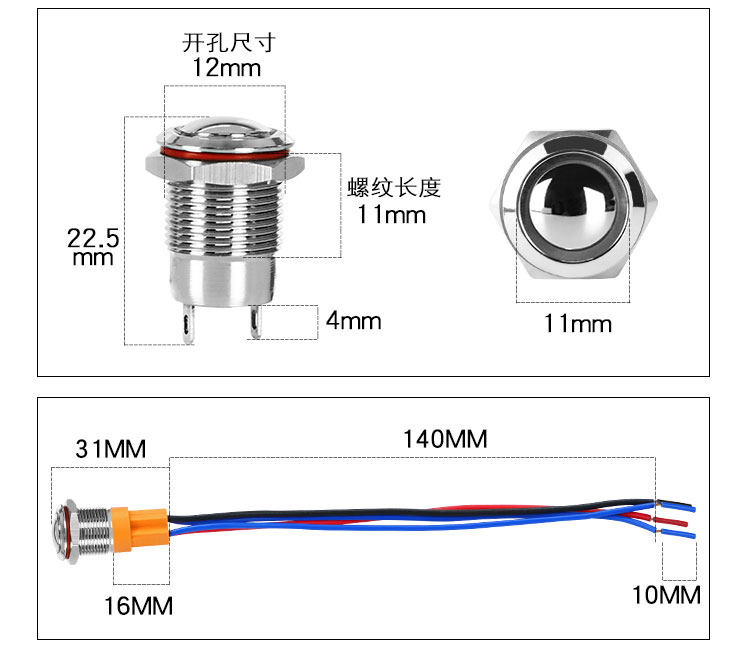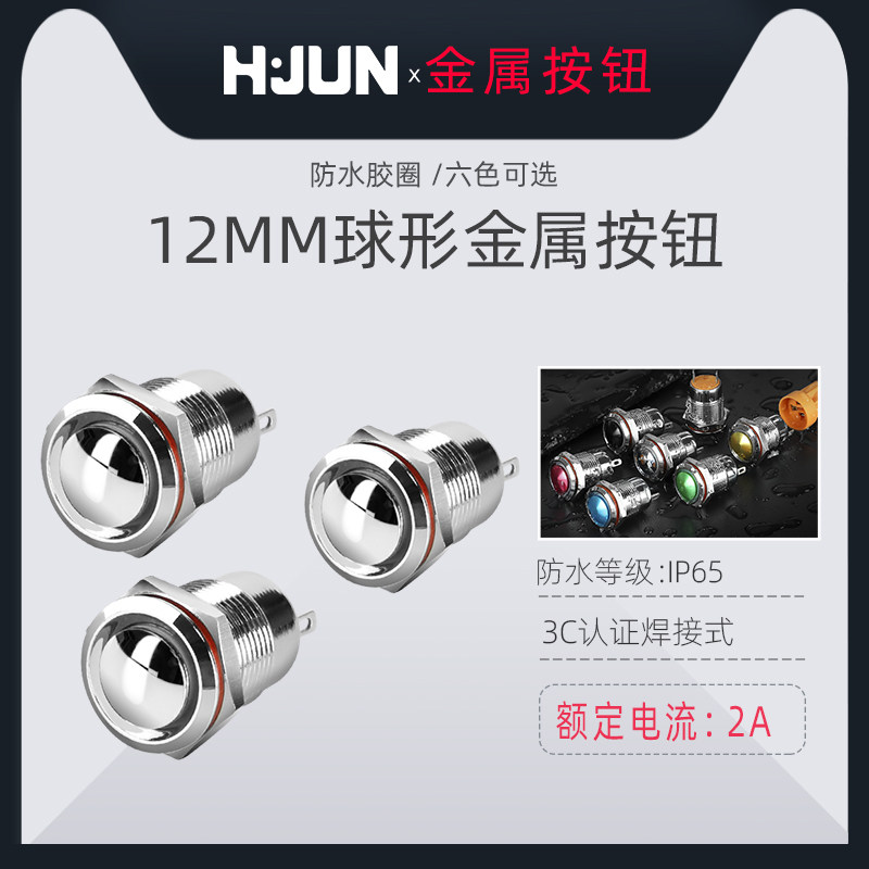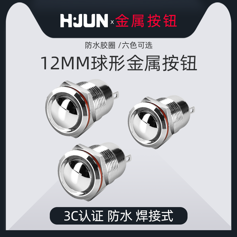 汇君 Металлическая кнопка, переключатель, черный маленький водонепроницаемый сферический мяч для водного поло, 12mm