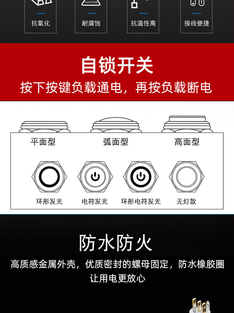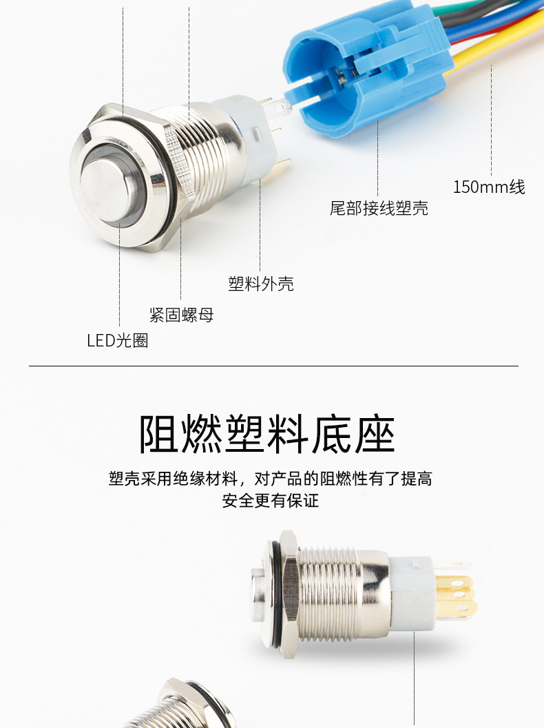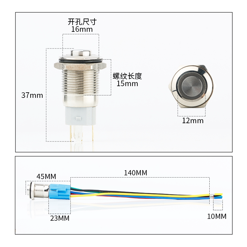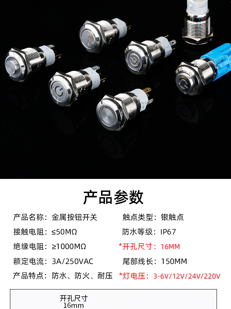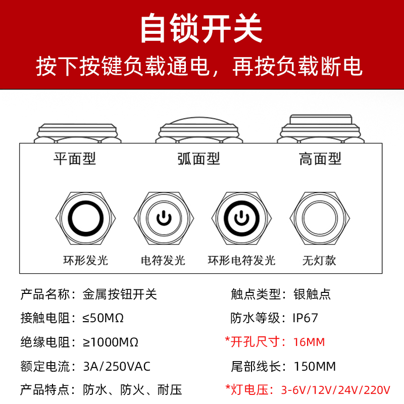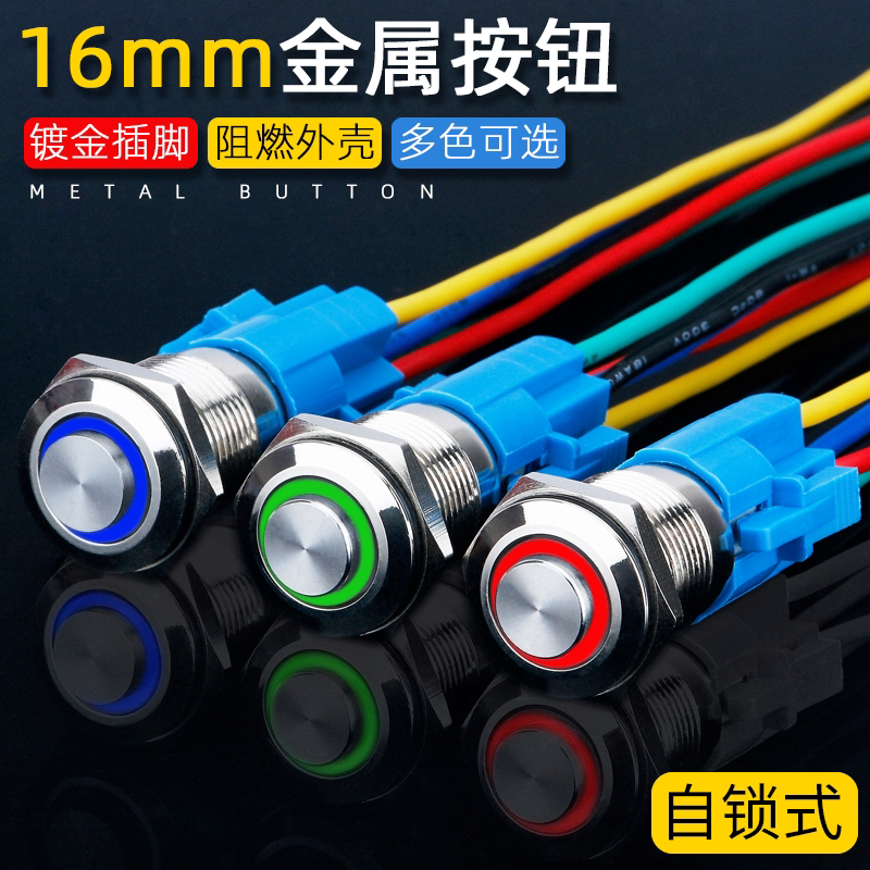 Металлическая кнопка, переключатель с подсветкой, светодиодная водонепроницаемая круглая световая панель, 16мм