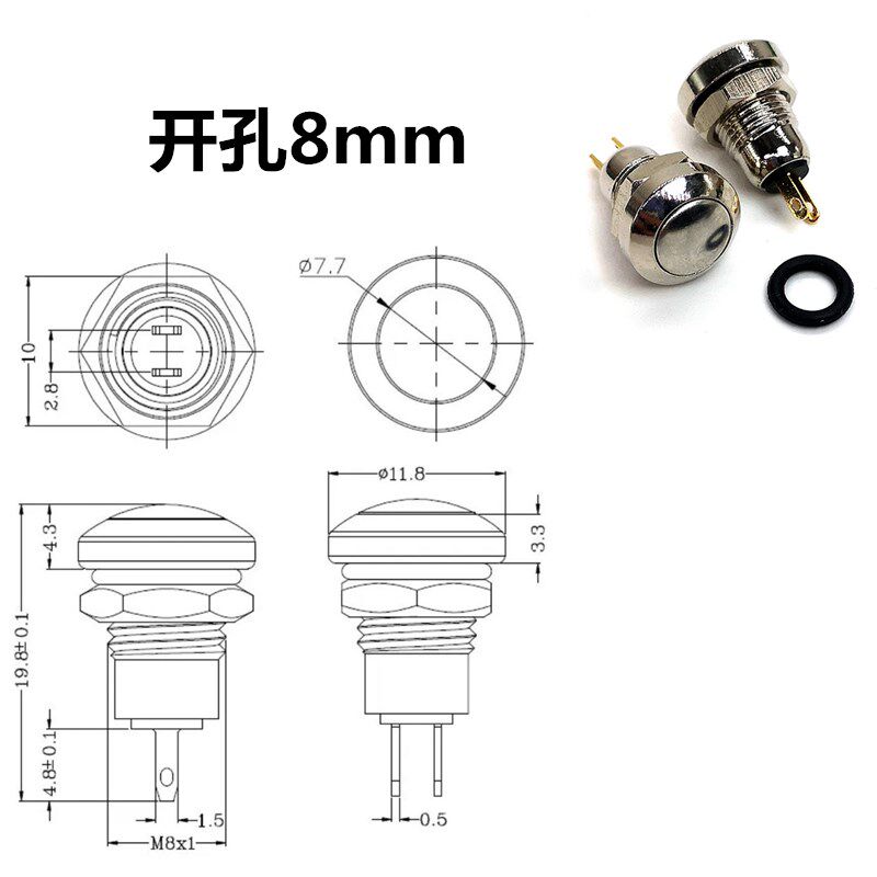 Металлическая кнопка, водонепроницаемый переключатель, блок питания, 8мм