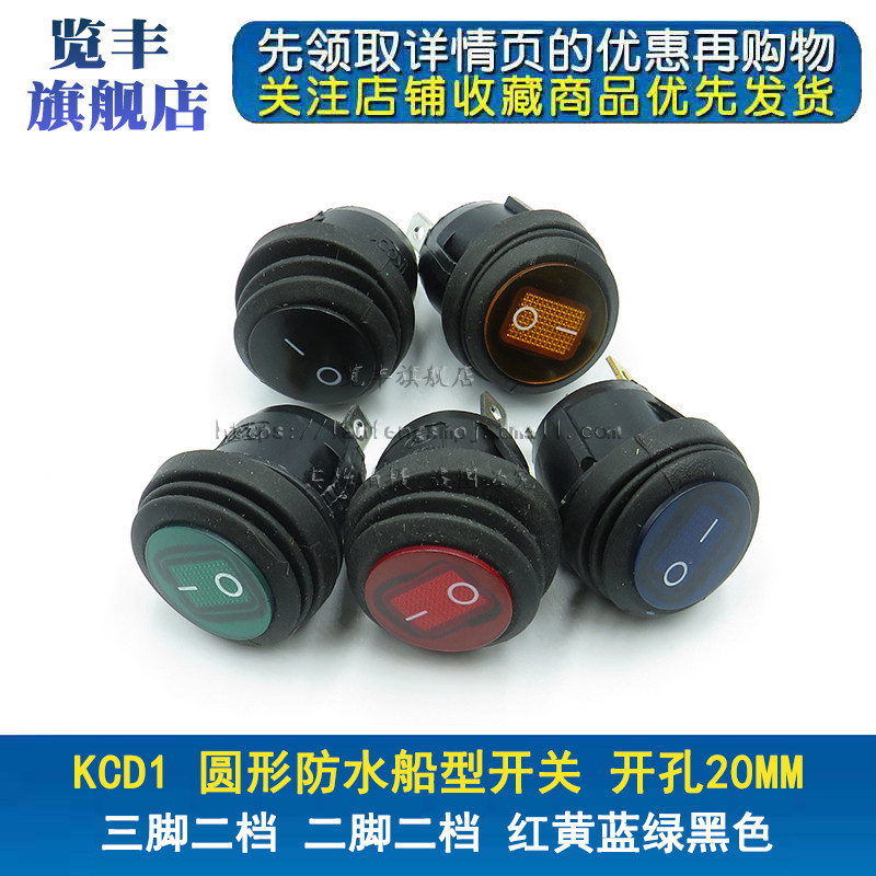 Водонепроницаемый круглый переключатель с аксессуарами с подсветкой, 3, 2, 20мм, 6A, 250v