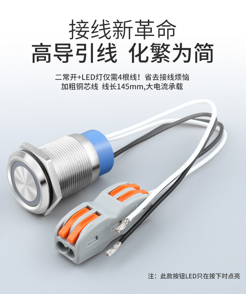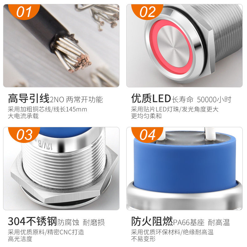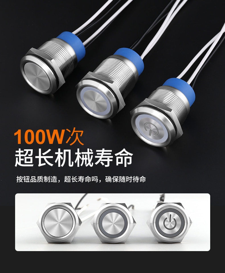 Металлическая кнопка из нержавеющей стали, электрический маленький блок питания, 22мм, 220v