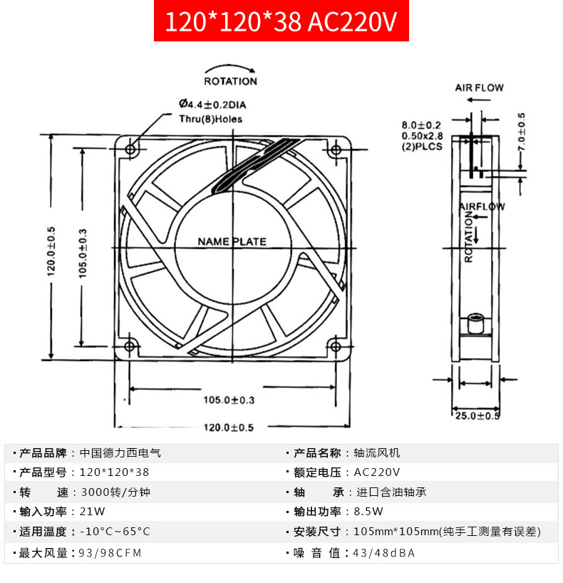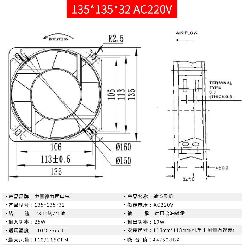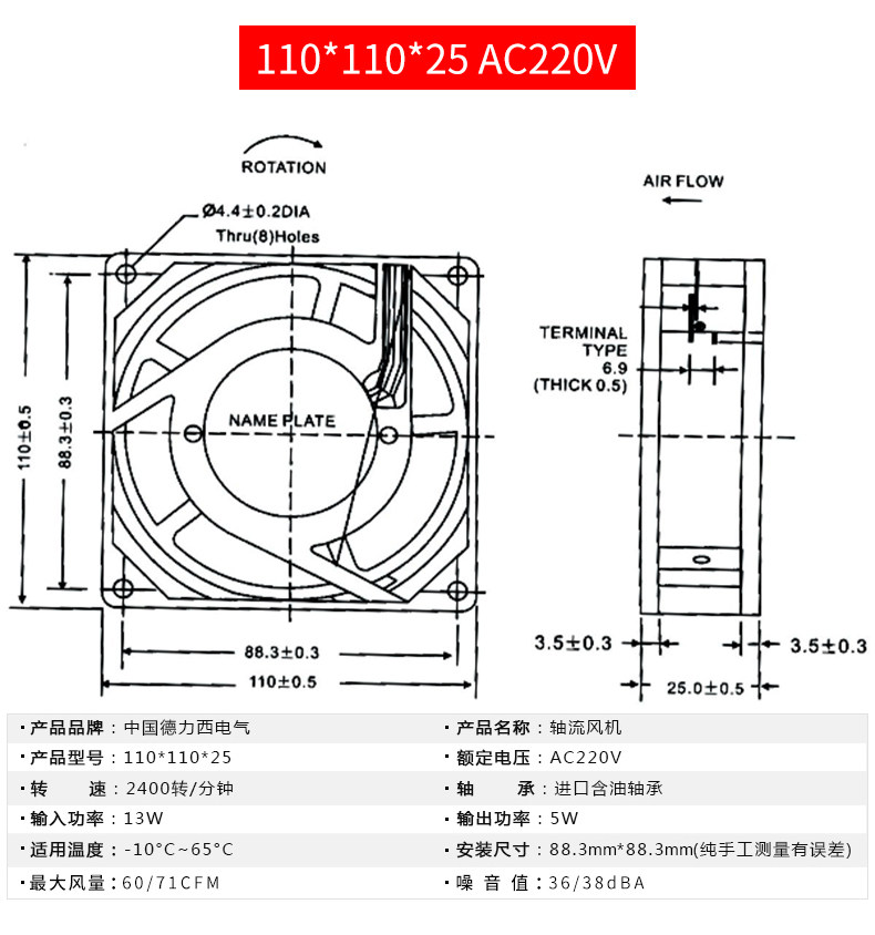 Delixi Cabinet Cooling Fanuster Industry Fan Fan Fant Ful Ful Fend 220V тихий высокий скорость