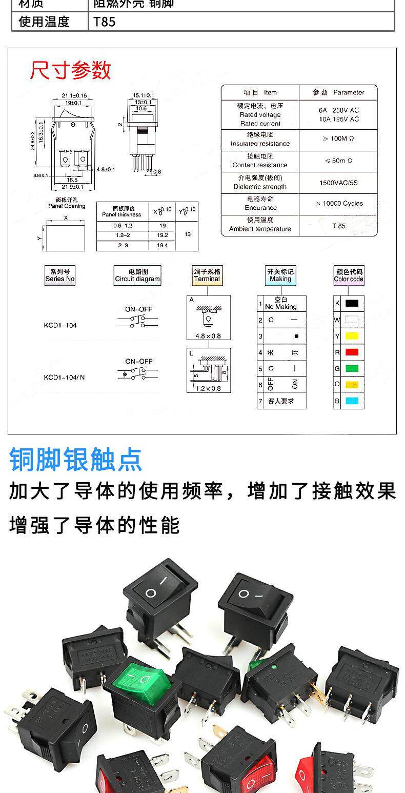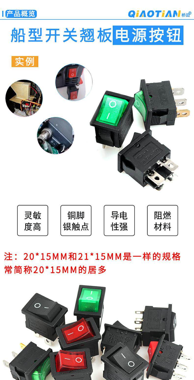 Переключатель типа лодки KCD1-101 104 Electronic Dispenser, называемый изогнутой кнопкой питания в форме корабля 2 фута 4 фута 250 В