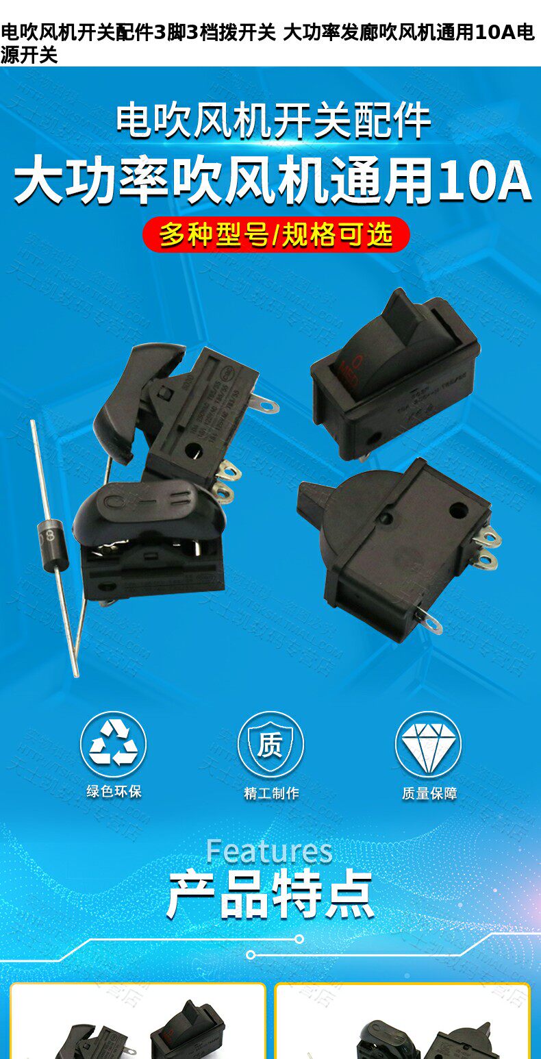 Фен, универсальный переключатель с аксессуарами, высокая мощность, 10A