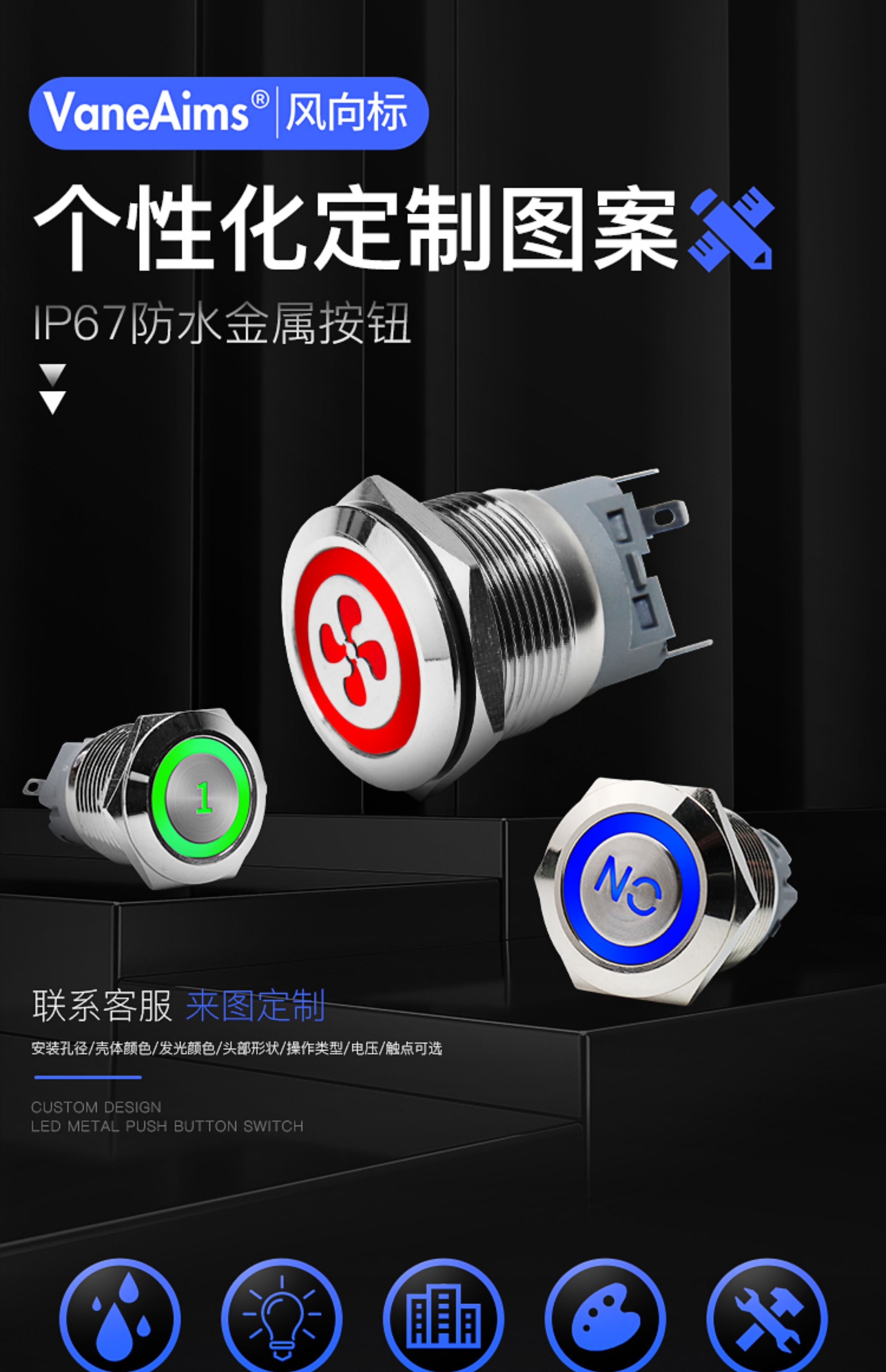Металлическая кнопка, переключатель, 11 года, делается под заказ, 22mm