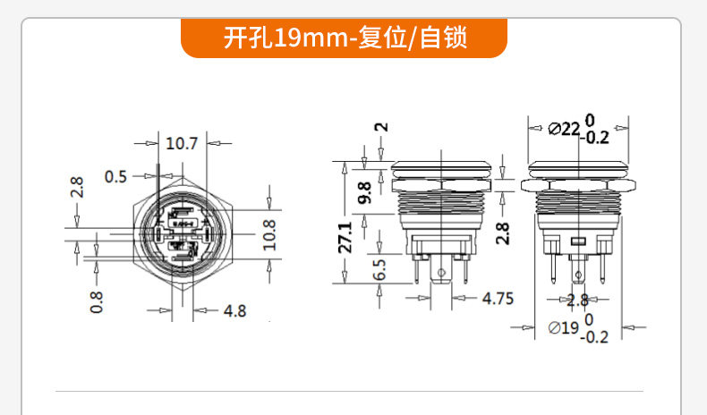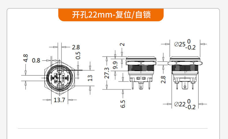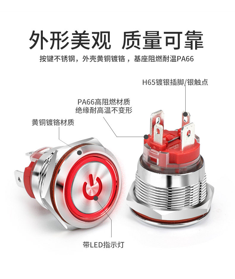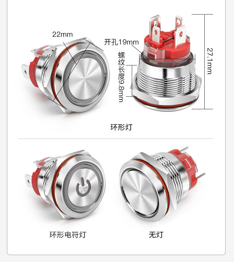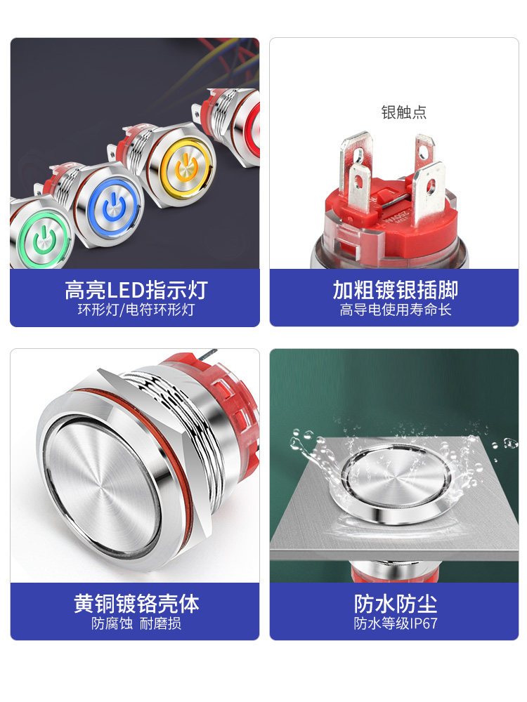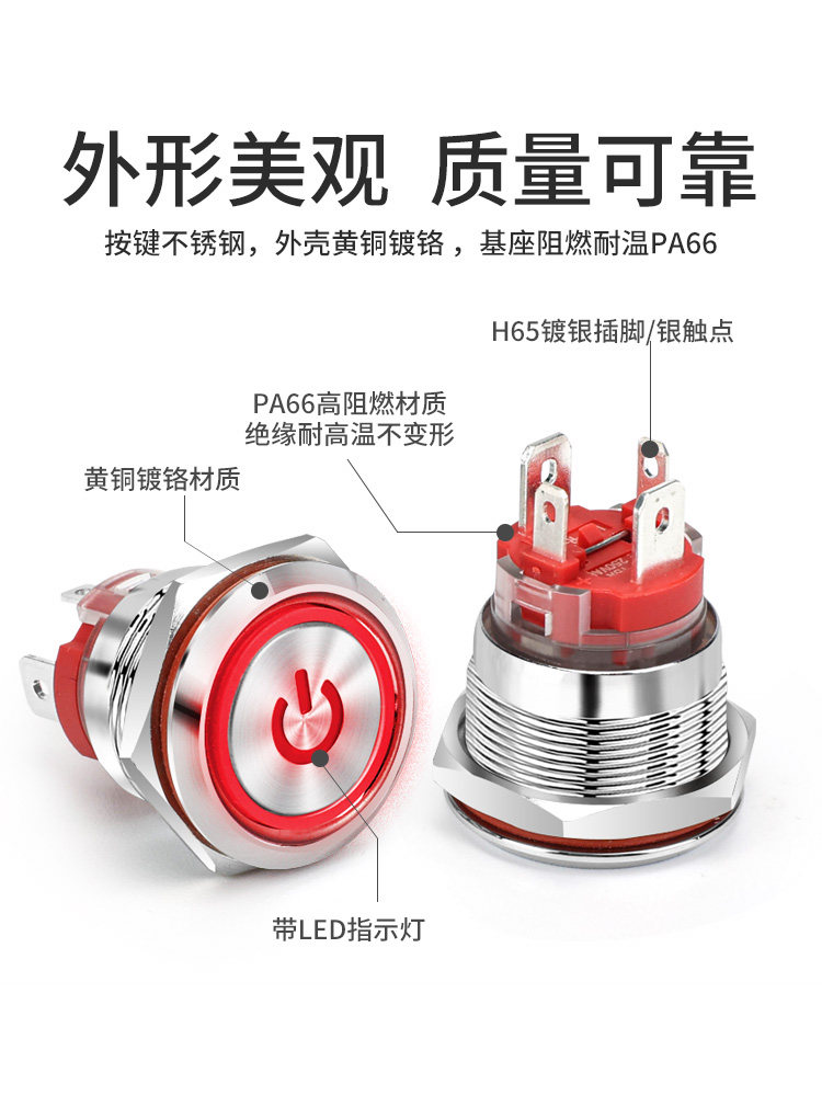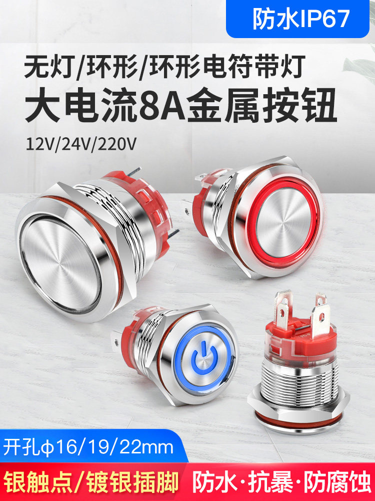 Большой ток 20A Self -Lock Reset Metal Button Switch 16 19 22 мм со легкой водонепроницаемой кнопкой пуговиц сварки сварки