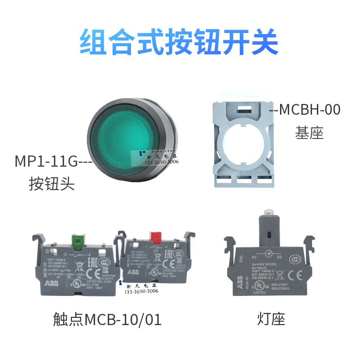 Оригинал ABB в сочетании с выключателем кнопки Light MP1-42G/R/Y/W-MCB-10-01/MP2 BASE