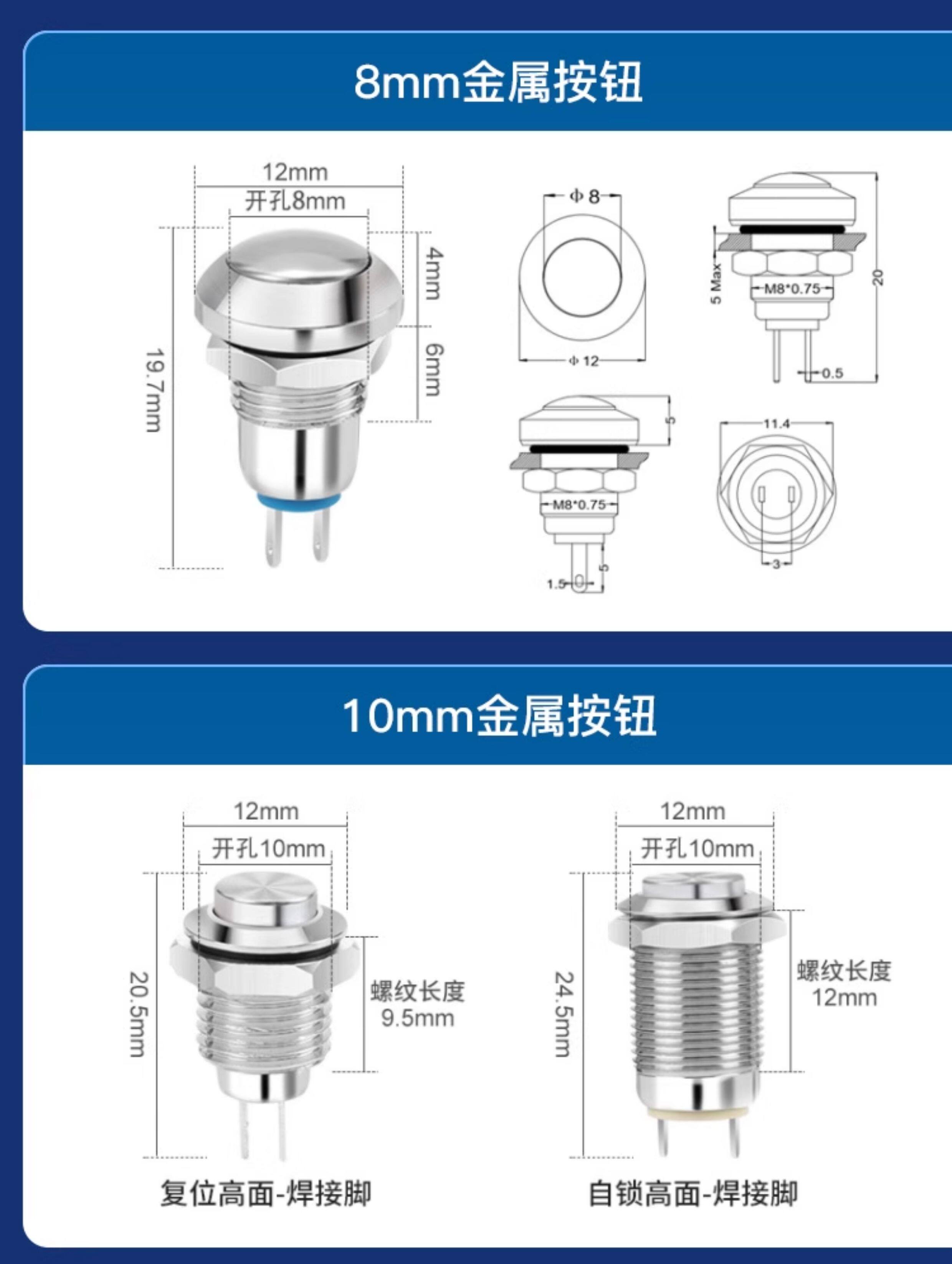 8, 10, 12, 16, 19 мм, металлический кнопочный переключатель, маленький, круглый, самоблокирующийся, положение крышки, переключатель дверного звонка, сварочный тип