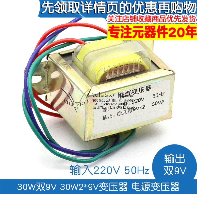 30 Вт двойной 9 В 30W2*9 В трансформатор трансформатор вход 220 В 50 Гц/выход: двойной 9 В