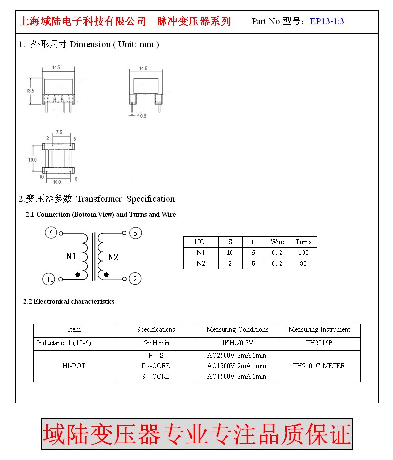 Домен Электронный импульсный трансформатор EP13 1: 3 Толкий трансформатор для плавания IGBT Трансформатор Paring Venture IGBT