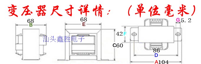 Фабрика прямой продажи Shantou xin shengxing бренд Power Transformer, Power 60 Вт, 60 Вт, Введите 220V, 2 красные линии,Вывод 12 В×2 (55 Вт) 2,3а, 3 строки,10 В (5 Вт) 0,5А, 2 строки,Вес 1,15 кг/кусок, размер железного ядра EI66×40Этот продукт в основном поставляет компьютерные динамики, плагин -танцевальные машины, мультимедийные динамики, исходные динамики, перфорированные машины IC, автоматические схемы управления, расстояние отверстия для установки винта 88±2 мм, длина, ширина и высота: 103×68×59 мм.Линия 22A, 1015#, а длина линии - 150 мм. Если вам нужно изменить, вы можете связаться с изменением.