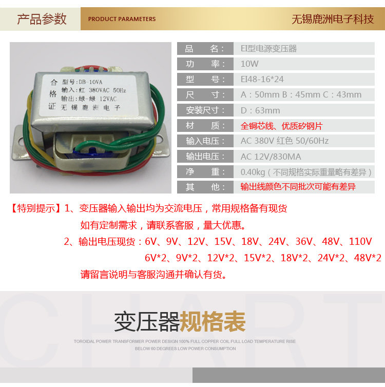 Трансформатор, безопасный медный блок питания, 10W, 380v, 12v, 380v