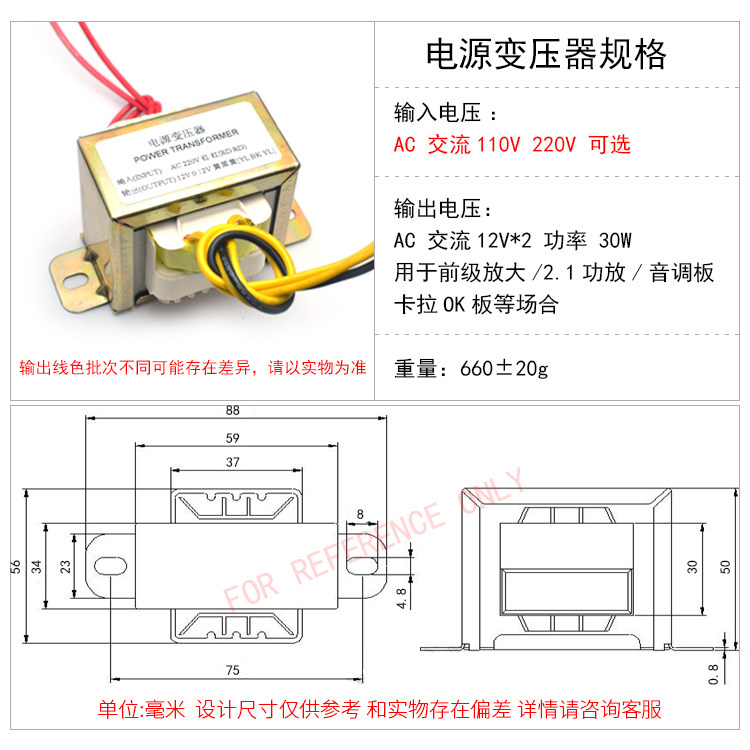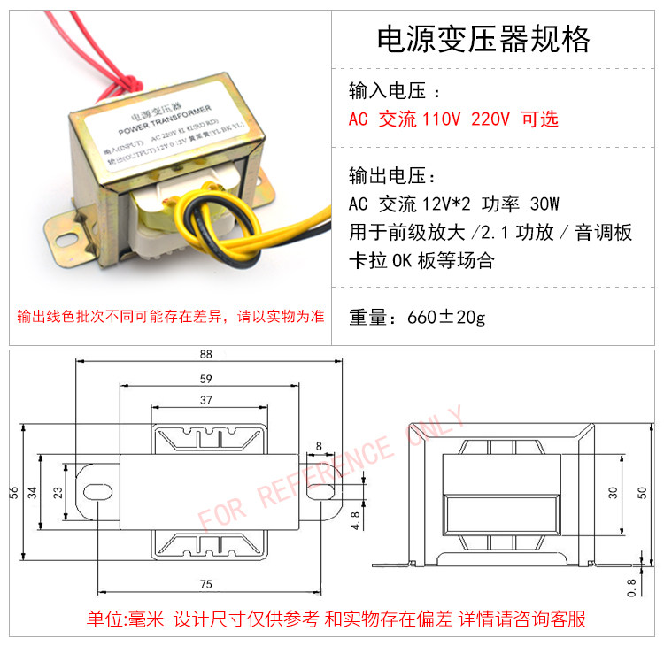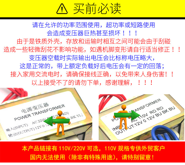 Медный квадратный блок питания, трансформатор, 12v, 30W, 110v, 220v