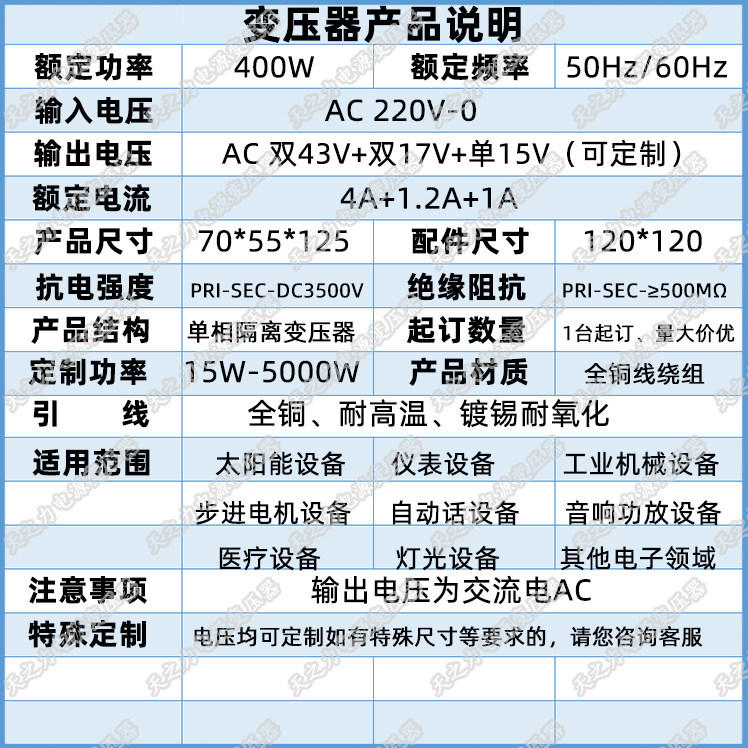 Трансформатор, блок питания, 400W, 220v, 43v, 17v, 15v, делается под заказ