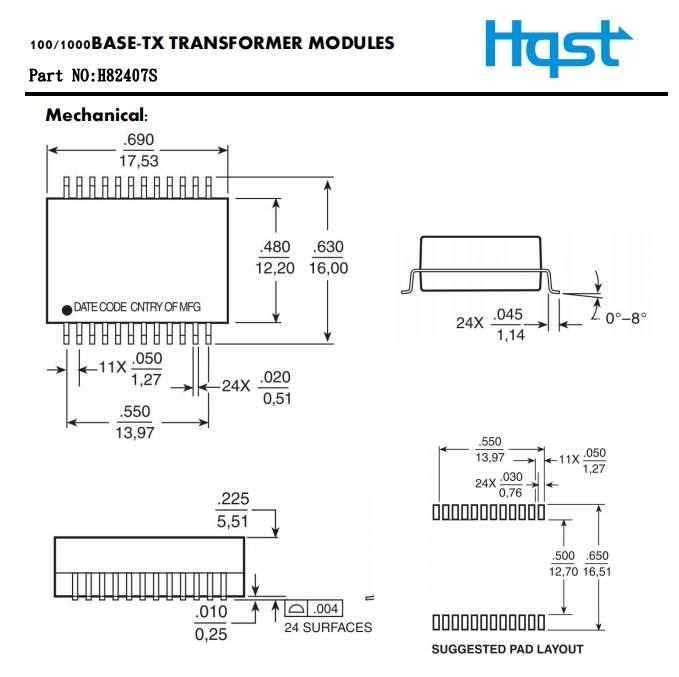 H82407S Гигабитный однопортовый сетевой трансформатор SOP24PIN, модуль изолирующего фильтра связи с патч-импульсом