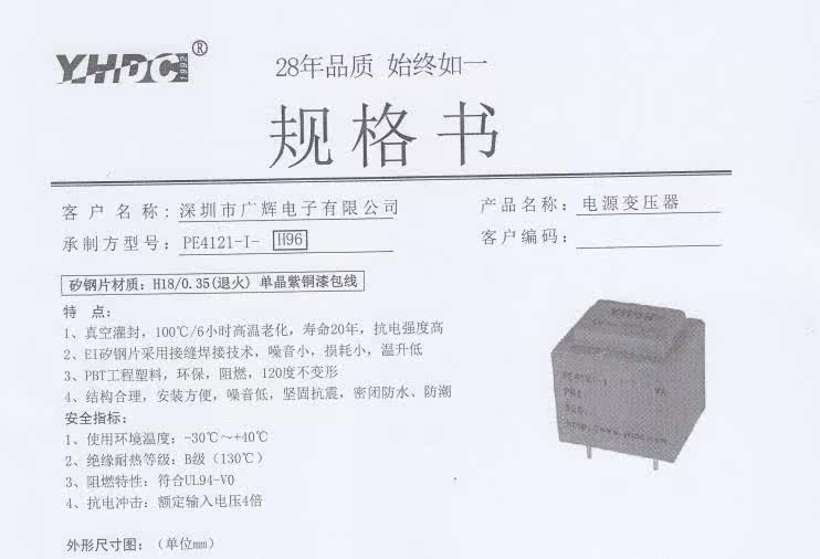 Фиксированный PE4121-I-H96 для старой модели PE4121D-I 8VA 380V/10V/0,1A+15V/0,45A
