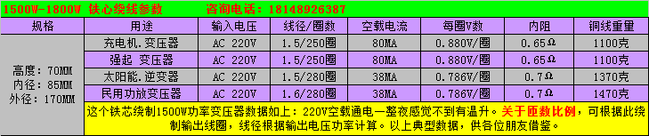 Импортный японский трансформатор, 1500W, 70 внутренний диаметр