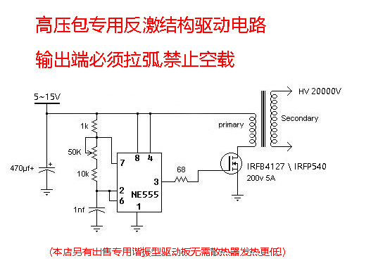 Высоковольтный выходной конец топологического трансформатора Flyback с одной трубкой должен быть выведен или загружен, и нагрузка не запрещена! Пластина с одной трубкой не должна работать долгое время. Если это займет много времени, добавьте вентилятор или замените больший радиатор!