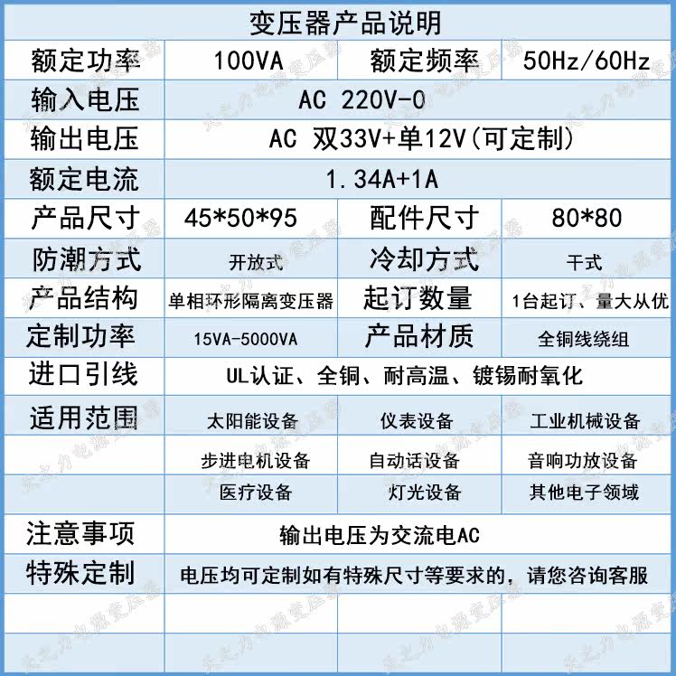 Трансформатор, медный блок питания, электронные аксессуары, 100W, 220v, 33v, 12v