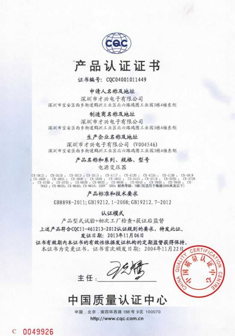 Сертификационный номер: CQC04001011449