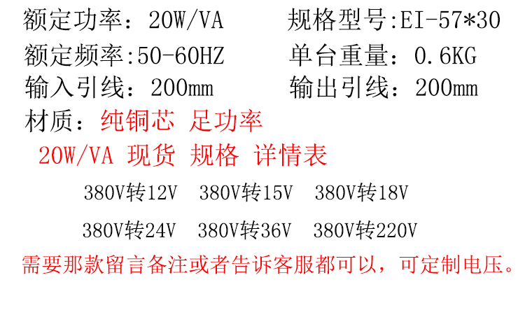 Блок питания, трансформатор, 20W, 380v, 12v, 15v, 18v, 24v, 36v, 220v, 20W