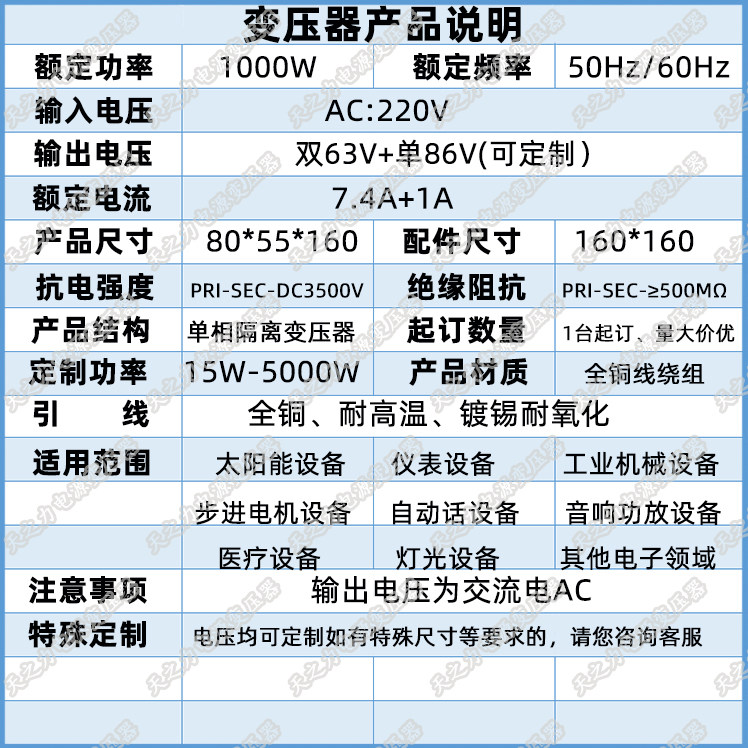 Трансформатор, медный блок питания, 1000W, 230v, 12v, 24v, 36v, 48v, 63v