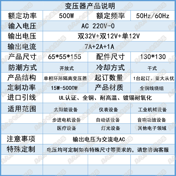 Медный трансформатор, 500W, 220v, 32v, 12v, 12v