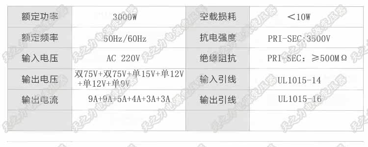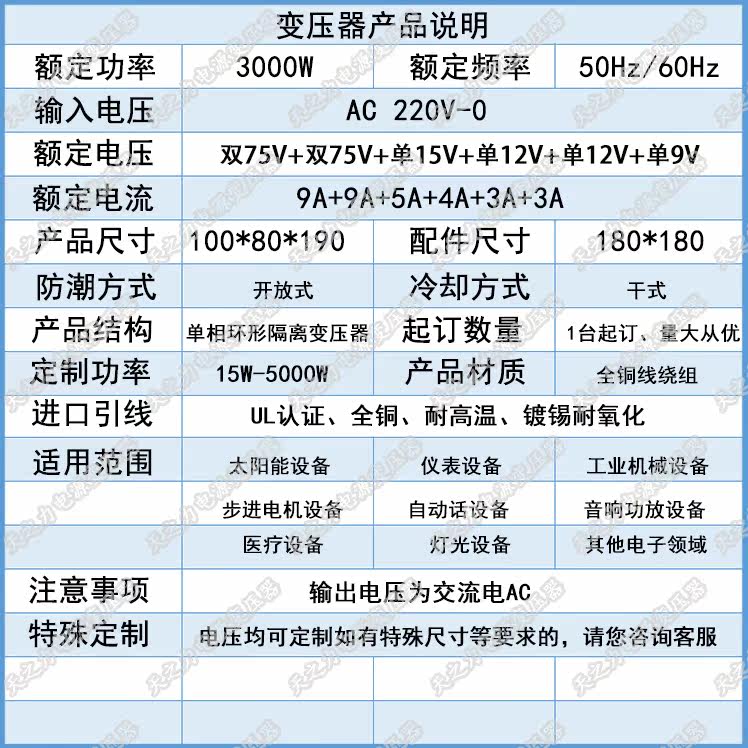 Медный трансформатор, 3000W, 220v, 75v, 75v, 15v, 12v, 12v, 9v