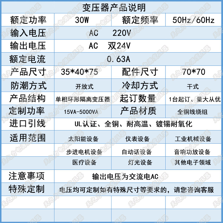 | Вторичное напряжение: | Двойной 9 В, 12v, 15v, 17v, 20v, 24v, 28v, 30v, 36v, Для другого напряжения, пожалуйста, заметите |