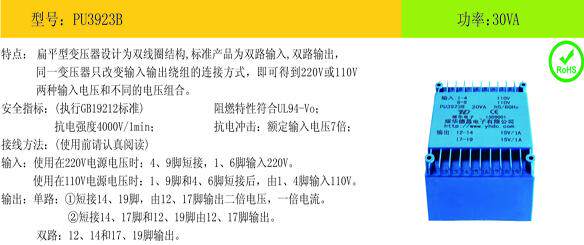 Индивидуальный трансформатор 30ВА 2*110В до 26В/0,58А 18В/0,83А PU3923B-G68 Время от 5 до 7 рабочих дней