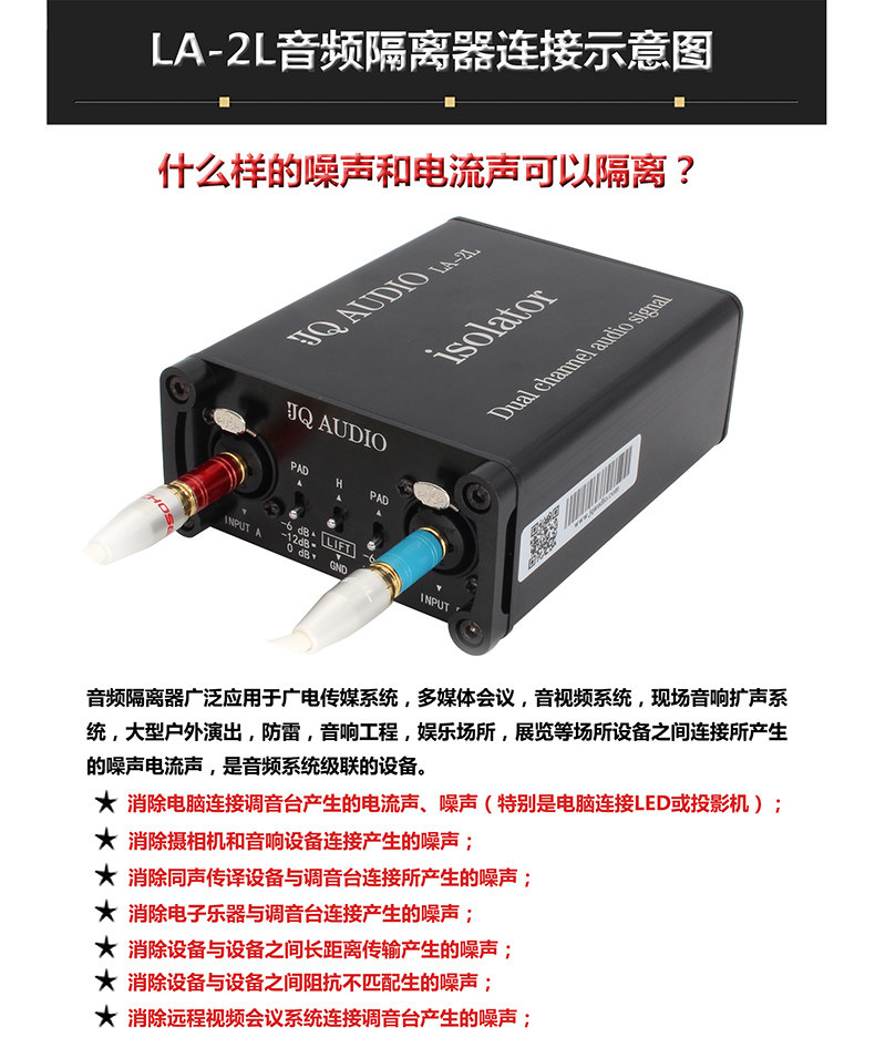 Реализуйте безопасную передачу аудиосигналов, удалите шум, сгенерированный подключением камеры и звука; Оборудование передается без шума, генерируемого некоммерной недвижимостью;Решите звук связи, вызванного электричеством, маршрутизацией, вмешательством легких и по другим причинам.Он также применим к серии систем аудиооборудования, таких как крупные открытые выступления, молниеносная защита, аудио -инжиниринг, конференции, развлекательные заведения, выставки и т. Д., что является важным оборудованием для союза аудиосистемы.