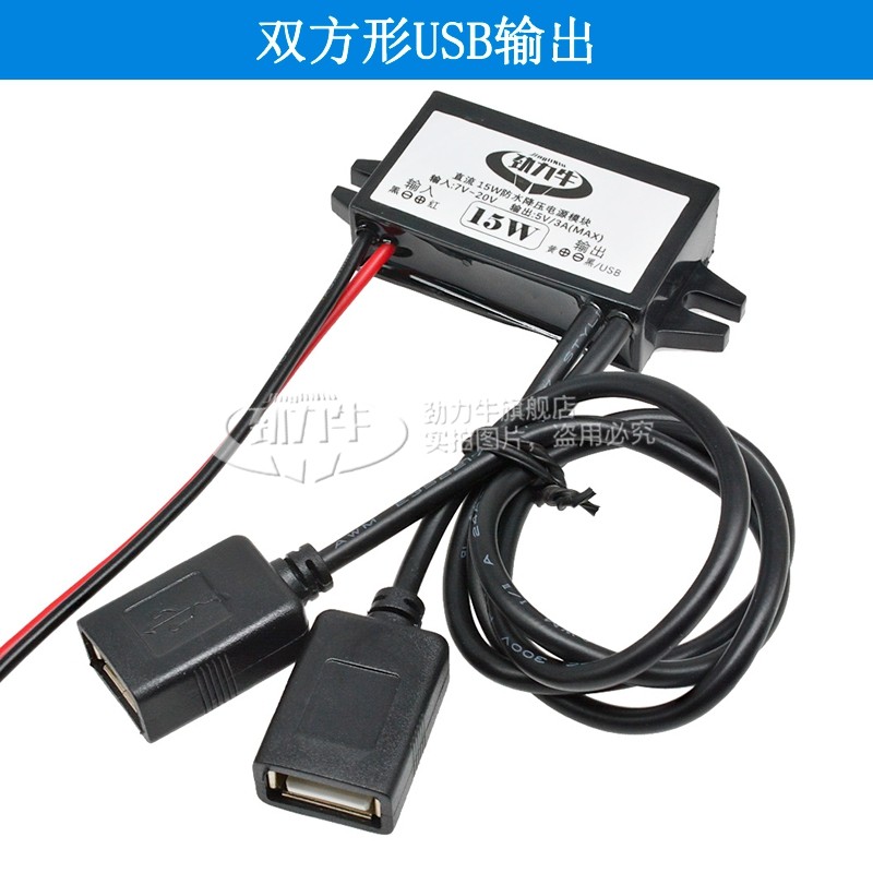 Водонепроницаемое транспортное средство Мобильный телефон зарядное устройство с двойным USB -разъемом DC12V до 5V3A DC Ограниченный антигипертензивный модуль 15W Power Board