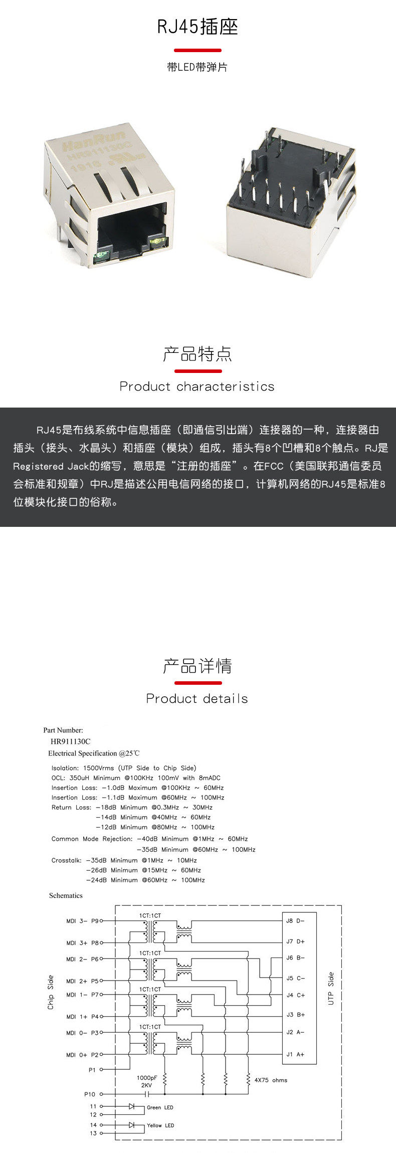 Оригинальный HR911130C RJ45 Socket 1000Base-T Wi-Fi Network Connecter с светодиодным укрытием