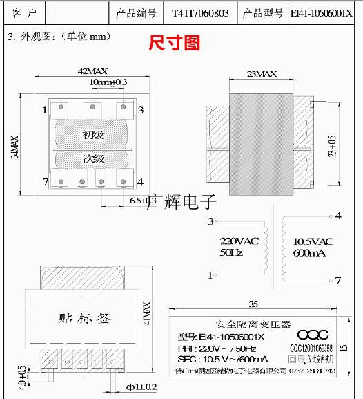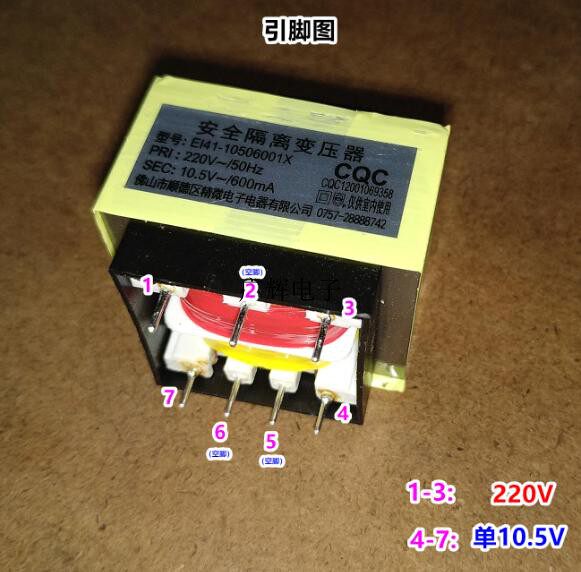 EI41-10506001X Изоляция безопасности трансформатор 220V-50 Гц 10,5 В/600 мА 3+4-контактные