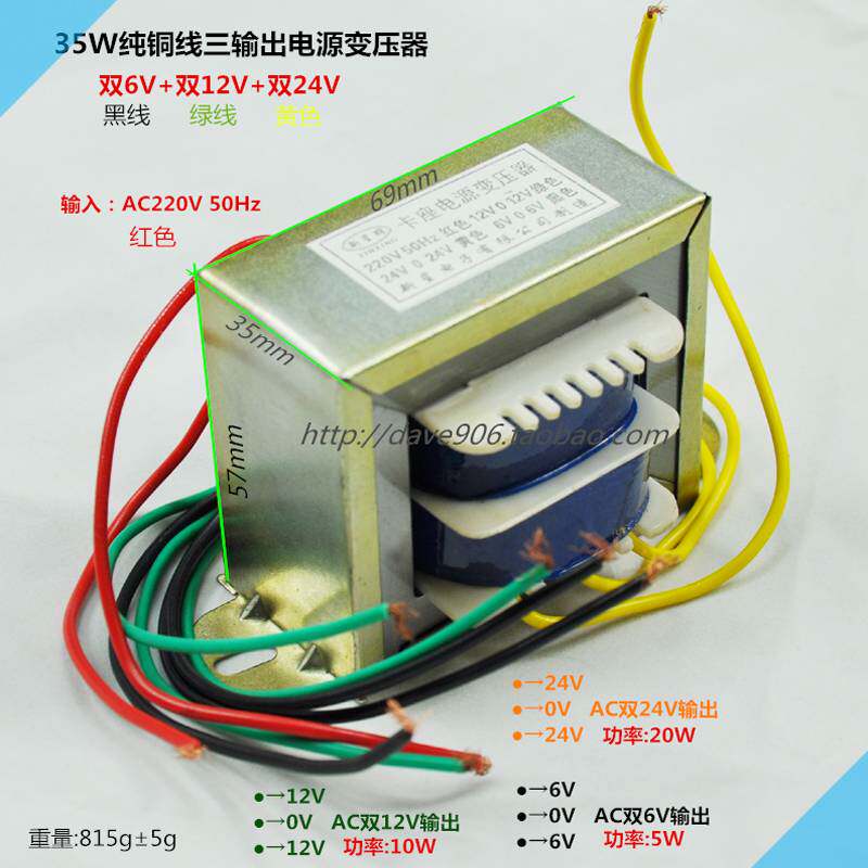 Медный квадратный блок питания, трансформатор, 35W, 220v, 6v, 12v, 24v, 18v