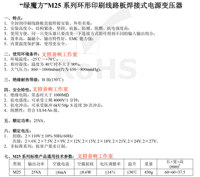 25 Вт Bingzi's Cube's Cube Bingzi Transformer PCB Прямая установленная герметичная корова двойное напряжение 15 В 15 В напряжение
