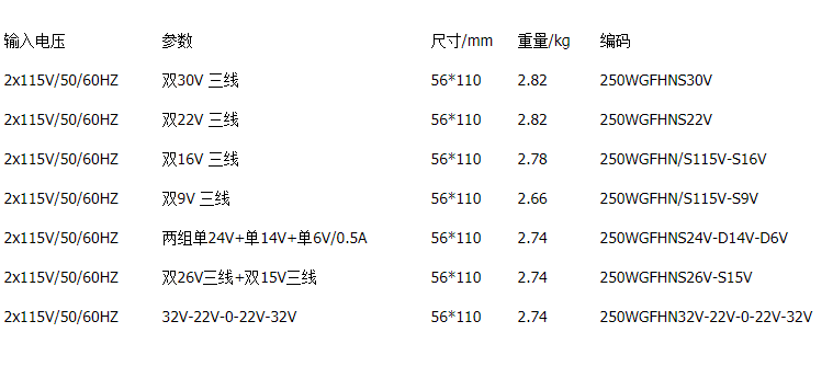 | 250W: | Двойной 22 В тройку/A94, Двойной 16 В тройка/098, Двойной 9 В трехпроводной/C1c |