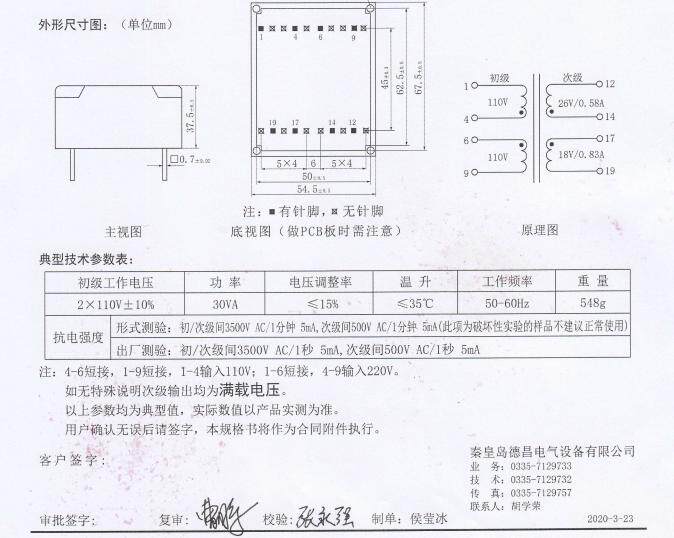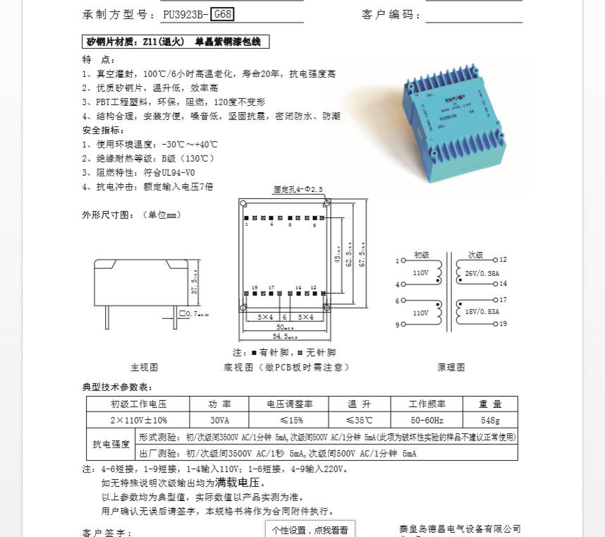 Пользовательский 30 ВА 2*110 В до 26 В/0,58A 18 В/0,83A Трансформатор PU3923B-G68 ??