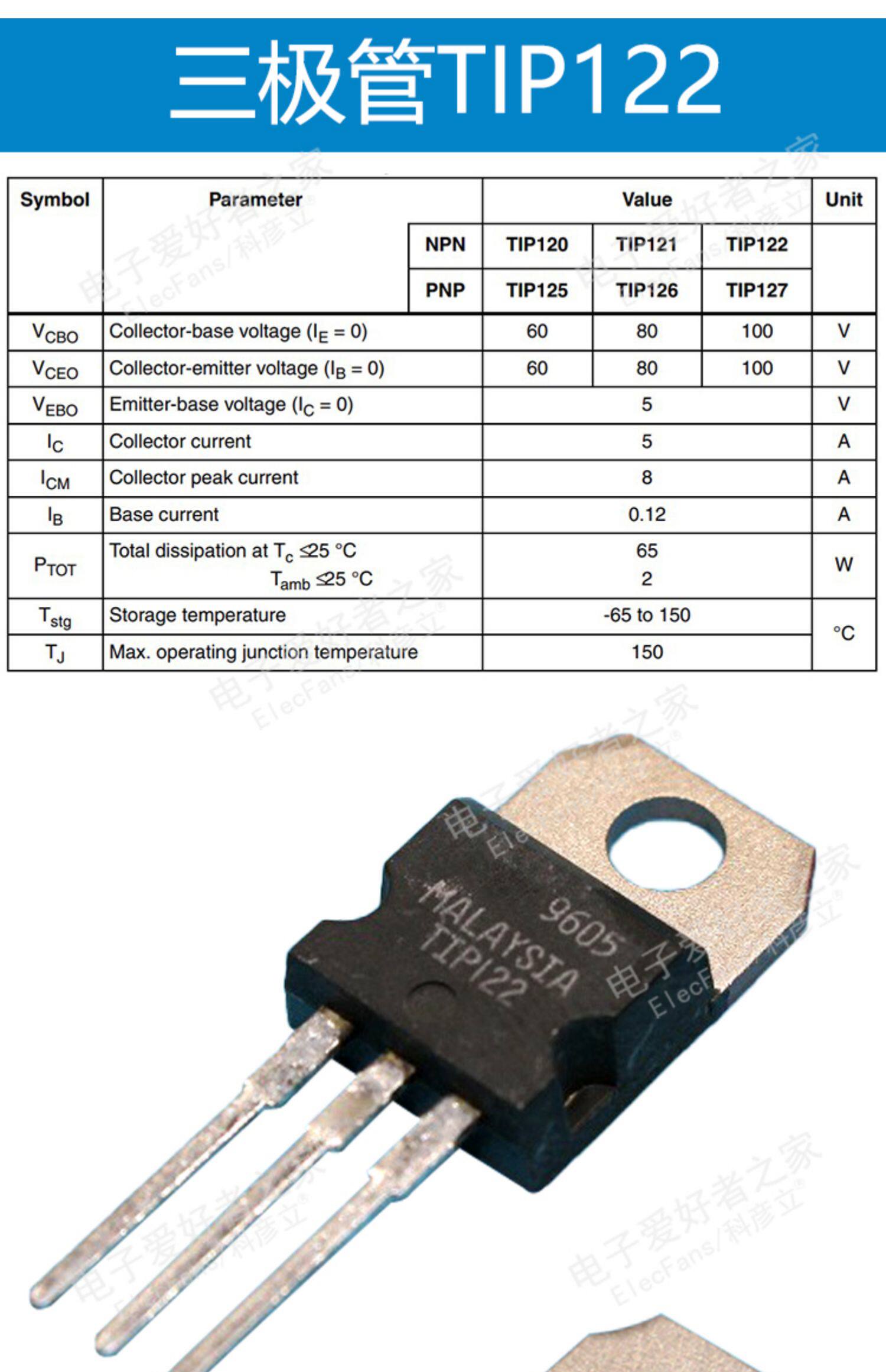Оригинальный импортный TIP122 Triode 5A 100V Пакет T0-220 Keyanli Electronic Special