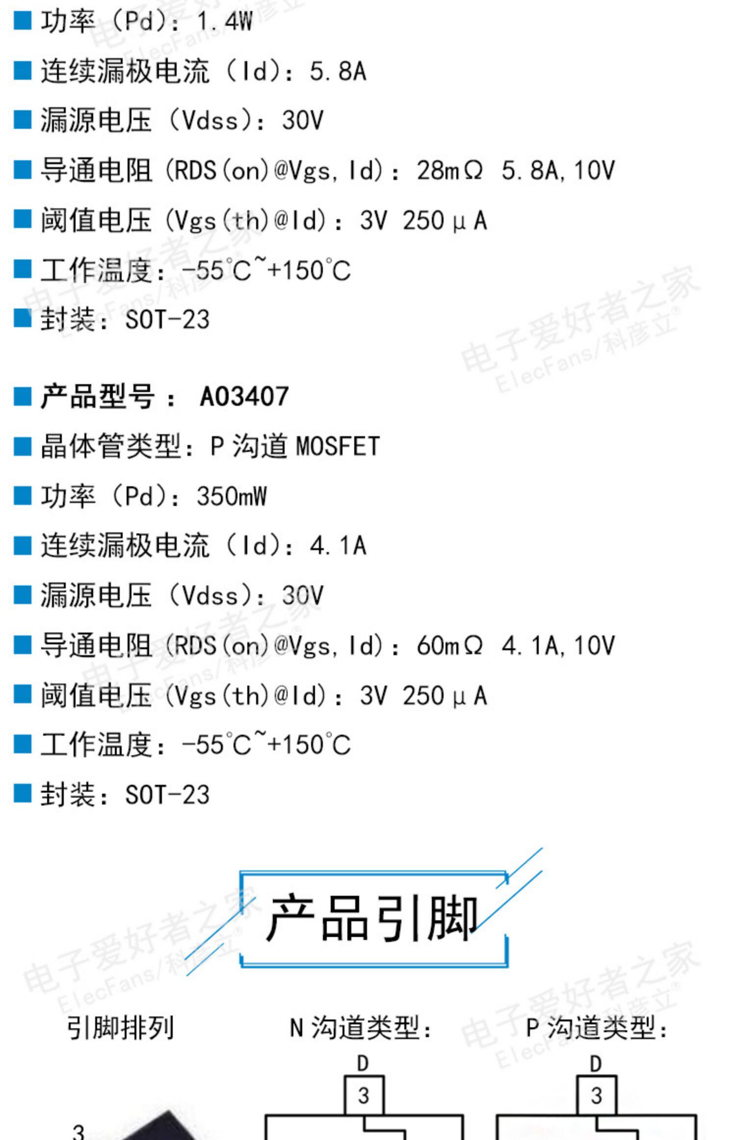 (20) Трубка полевого эффекта серии AO3400/3401