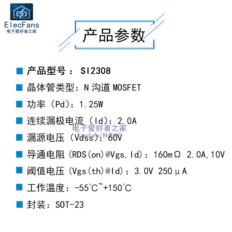 (20) SI2308 2A/60V Плачковое поле Эффект Трубка A8SHB Crystal MOS Tube SOT-23 SOT-23