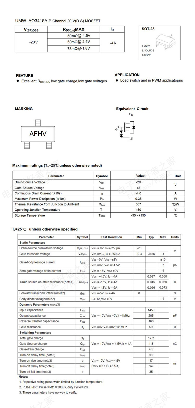 (10) Патч AO3415 SOT-23 -20V/-4A P-канал