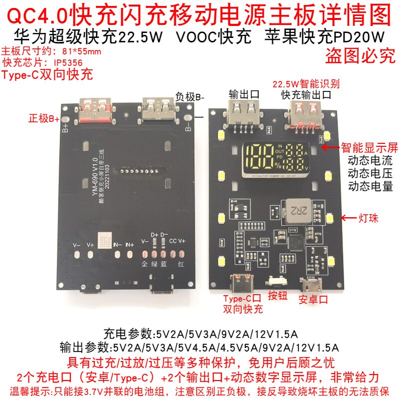 Полное соглашение Super Express Flash Fighting Motherboard 22.5W Мобильная мощность набор зарядки схема схемы сокровища PD20W
