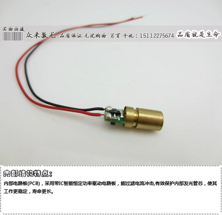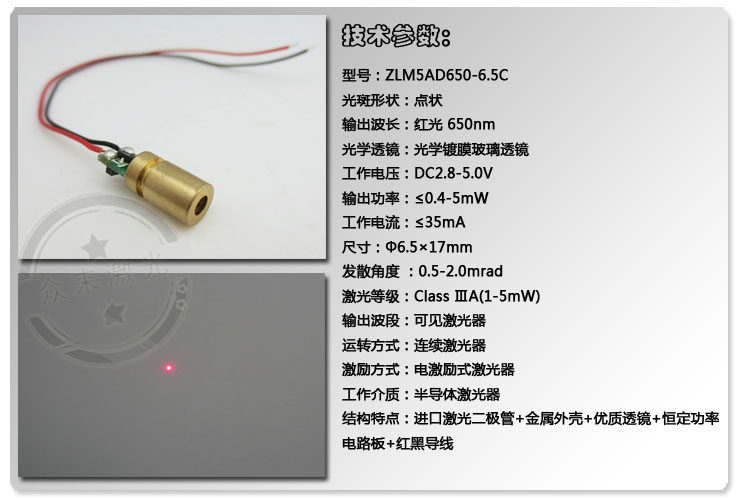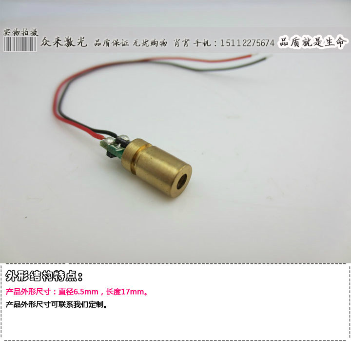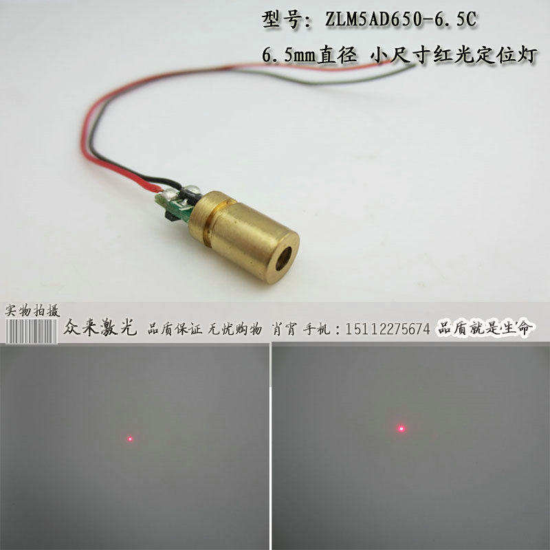 F6.5 Красная лазерная головка 650NM5MW LASER LASER модуль с заседанием платы Spots 10 метров 1 см Медная оболочка положительный полюс