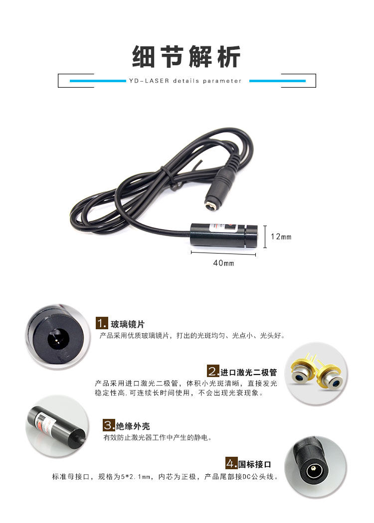 - Внешний диаметр 12*40 мм 12 В лазерная головка