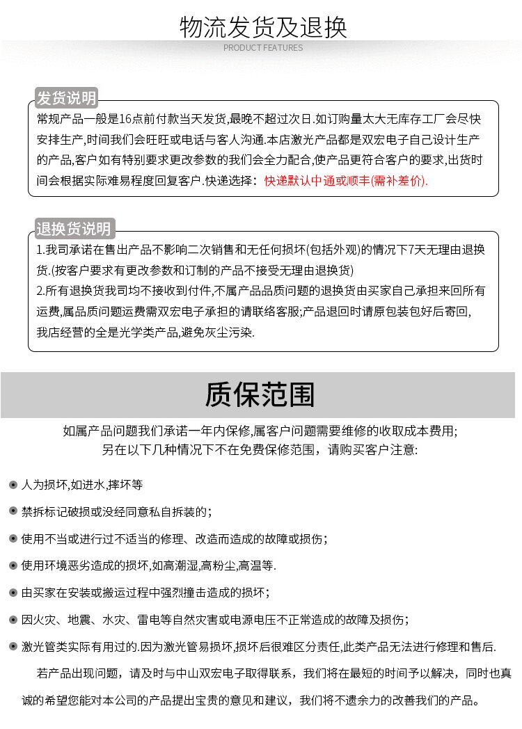 8. Форма/диаметр пятна: световое пятно 10 м, 8*12 мм (Доступны две структуры: фиксированный фокус/регулируемый фокус. Структура с фиксированным фокусом поставляется по умолчанию. Если вам нужна регулируемая фокусировка, пожалуйста, оставьте сообщение.Полем
